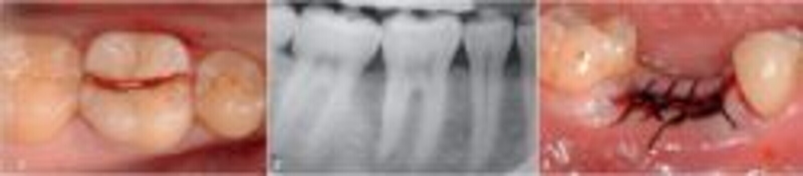 图3:拔牙时未损伤牙槽骨壁。不使用移植材料,对牙槽窝进行刮除和缝合。