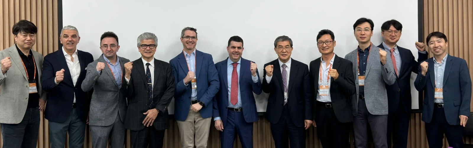 奥齿泰种植体全球共识研讨会参会专家合影。从左至右依次为:李秀英博士、加埃塔诺・诺埃教授、雷杰普・乌祖尔博士、大久保千博教授、费利佩・阿吉雷博士、马尔科・塔拉里科博士、赵仁浩博士、尤金・金博士、赵永珍博士、卢宽泰教授、金钟恩教授。(图片来源:奥齿泰种植体)